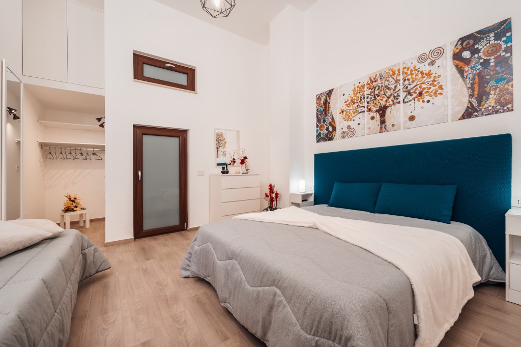 Appartamento locato a Santeramo in Colle, in via Bruno Buozzi ,11. Adatto a 5 persone. I posti letto sono disposti nel seguente modo: – 1 letto matrimoniale e 1 letto singolo nella camera matrimoniale; – 1 divano letto nel soggiorno. La casa è ampia e adatta a tutte le vostre esigenze. Il bagno ha una doccia ampia e moderna ed è fornita anche da lavatrice. La cucina è fornita di tutti i comfort: forno, piano a induzione, lavastoviglie, microonde e frigo.
