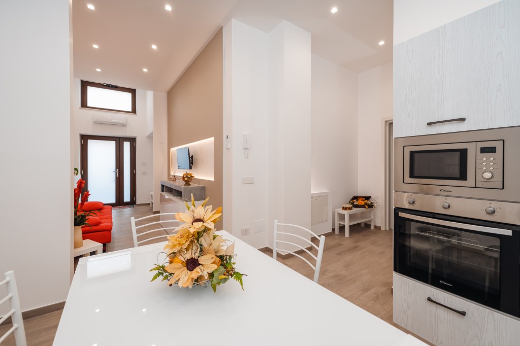 Appartamento locato a Santeramo in Colle, in via Po, 5. Adatto a 4 persone. I posti letto sono disposti nel seguente modo: – 1 letto matrimoniale nella camera matrimoniale; – 1 divano letto nel soggiorno. La casa è ampia e adatta a tutte le vostre esigenze. Il bagno ha una doccia ampia e moderna ed è fornita anche da lavatrice. La cucina è fornita di tutti i comfort: forno, piano a induzione, lavastoviglie, microonde e frigo.